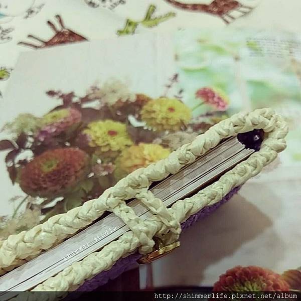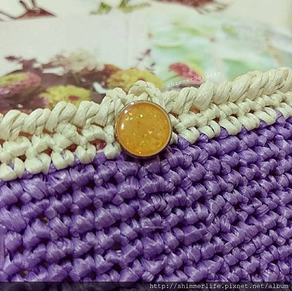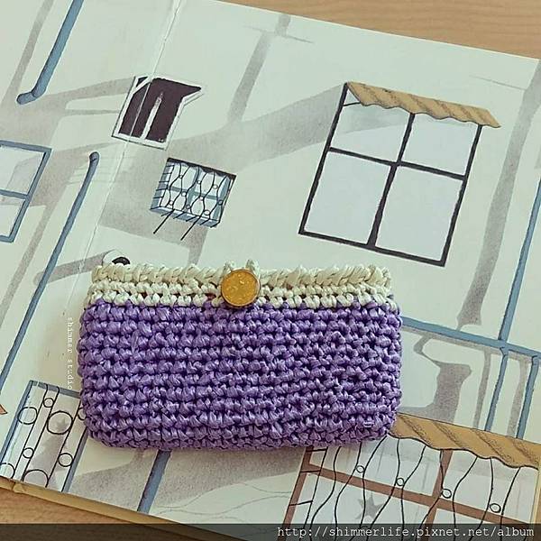 選了之前作品的餘線很快地用短針織了一只紫X白配小袋,逆短針作收尾